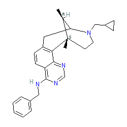 | SMILES | C[C@H]1C2Cc3ccc4c(NCc5ccccc5)ncnc4c3[C@@]1(C)CCN2CC1CC1 |