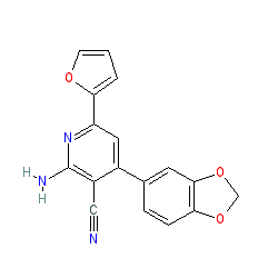 | SMILES | N#Cc1c(-c2ccc3c(c2)OCO3)cc(-c2ccco2)nc1N |