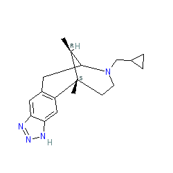 | SMILES | C[C@H]1C2Cc3cc4nn[nH]c4cc3[C@@]1(C)CCN2CC1CC1 |