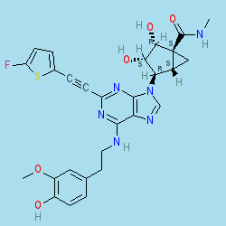 | SMILES | CNC(=O)[C@@]12C[C@@H]1[C@@H](n1cnc3c(NCCc4ccc(O)c(OC)c4)nc(C#Cc4ccc(F)s4)nc31)[C@H](O)[C@@H]2O |