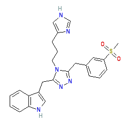 | SMILES | CS(=O)(=O)c1cccc(Cc2nnc(Cc3c[nH]c4ccccc34)n2CCCc2c[nH]cn2)c1 |