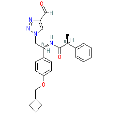 | SMILES | C[C@H](C(=O)N[C@@H](Cn1cc(C=O)nn1)c1ccc(OCC2CCC2)cc1)c1ccccc1 |