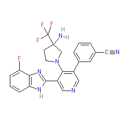 | SMILES | N#Cc1cccc(-c2cncc(-c3nc4c(F)cccc4[nH]3)c2N2CCC(N)(C(F)(F)F)C2)c1 |