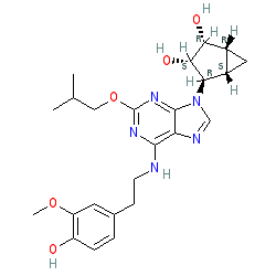| SMILES | COc1cc(CCNc2nc(OCC(C)C)nc3c2ncn3[C@H]2[C@H](O)[C@H](O)[C@@H]3C[C@@H]32)ccc1O |