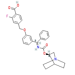 | SMILES | O=C(N[C@@H](c1ccccc1)c1cccc(OCc2ccc(C(=O)O)c(F)c2)c1)O[C@H]1CN2CCC1CC2 |
