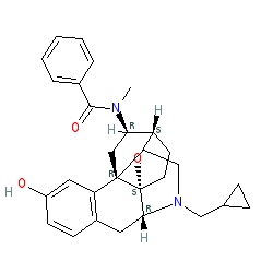 | SMILES | CN(C(=O)c1ccccc1)[C@@H]1C[C@]23CCN(CC4CC4)[C@H](Cc4ccc(O)cc42)[C@]32CC[C@@H]1O2 |