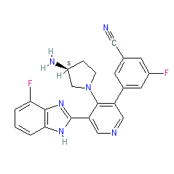 | SMILES | N#Cc1cc(F)cc(-c2cncc(-c3nc4c(F)cccc4[nH]3)c2N2CC[C@H](N)C2)c1 |