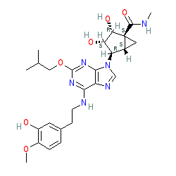 | SMILES | CNC(=O)[C@@]12C[C@@H]1[C@@H](n1cnc3c(NCCc4ccc(OC)c(O)c4)nc(OCC(C)C)nc31)[C@H](O)[C@@H]2O |