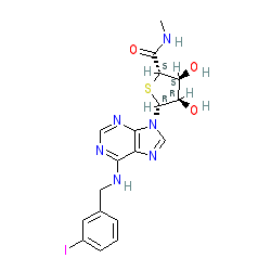 | SMILES | CNC(=O)[C@H]1S[C@@H](n2cnc3c(NCc4cccc(I)c4)ncnc32)[C@H](O)[C@@H]1O |