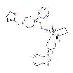| SMILES | Cc1nc2ccccc2n1[C@@H]1C[C@@H]2CC[C@H](C1)N2CCC1(c2ccccc2)CCN(Cc2ncco2)CC1 |