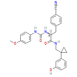 | SMILES | COc1ccc(NC(=O)N[C@H](Cc2ccc(C#N)cc2)C(=O)NCC2(c3cccc(O)c3)CC2)cc1 |