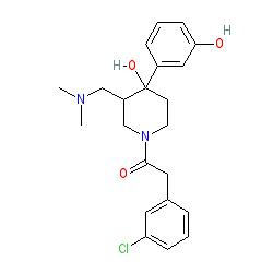 | SMILES | CN(C)CC1CN(C(=O)Cc2cccc(Cl)c2)CCC1(O)c1cccc(O)c1 |
