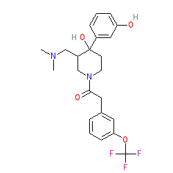 | SMILES | CN(C)CC1CN(C(=O)Cc2cccc(OC(F)(F)F)c2)CCC1(O)c1cccc(O)c1 |