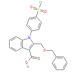 | SMILES | O=C(O)c1c(COCc2ccccc2)n(-c2ccc(S(=O)(=O)Cl)cc2)c2ccccc12 |