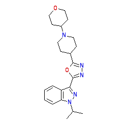 | SMILES | CC(C)n1nc(-c2nnc(C3CCN(C4CCOCC4)CC3)o2)c2ccccc21 |
