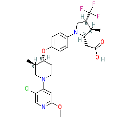 | SMILES | COc1cc(N2CC[C@@H](Oc3ccc(N4C[C@H](C(F)(F)F)[C@@H](C)[C@@H]4CC(=O)O)cc3)[C@H](C)C2)c(Cl)cn1 |