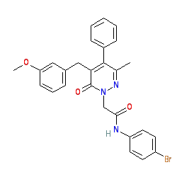 | SMILES | COc1cccc(Cc2c(-c3ccccc3)c(C)nn(CC(=O)Nc3ccc(Br)cc3)c2=O)c1 |
