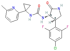 | SMILES | Cc1cccc(C2(NC(=O)N[C@@H]3C(=O)NC[C@H]3c3c(F)cc(Cl)cc3F)CC2)n1 |