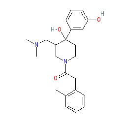 | SMILES | Cc1ccccc1CC(=O)N1CCC(O)(c2cccc(O)c2)C(CN(C)C)C1 |