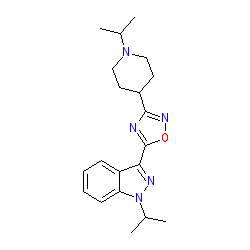 | SMILES | CC(C)N1CCC(c2noc(-c3nn(C(C)C)c4ccccc34)n2)CC1 |