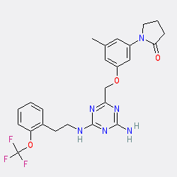 | SMILES | Cc1cc(OCc2nc(N)nc(NCCc3ccccc3OC(F)(F)F)n2)cc(N2CCCC2=O)c1 |