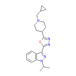 | SMILES | CC(C)n1nc(-c2nnc(C3CCN(CC4CC4)CC3)o2)c2ccccc21 |