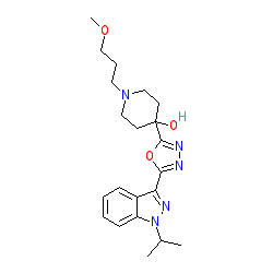| SMILES | COCCCN1CCC(O)(c2nnc(-c3nn(C(C)C)c4ccccc34)o2)CC1 |