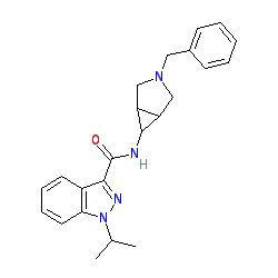 | SMILES | CC(C)n1nc(C(=O)NC2C3CN(Cc4ccccc4)CC32)c2ccccc21 |