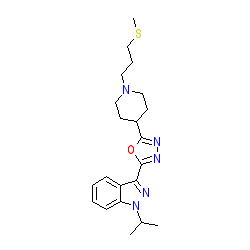 | SMILES | CSCCCN1CCC(c2nnc(-c3nn(C(C)C)c4ccccc34)o2)CC1 |