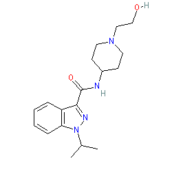 | SMILES | CC(C)n1nc(C(=O)NC2CCN(CCO)CC2)c2ccccc21 |