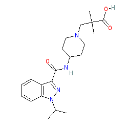 | SMILES | CC(C)n1nc(C(=O)NC2CCN(CC(C)(C)C(=O)O)CC2)c2ccccc21 |