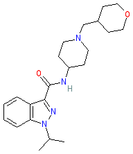 | SMILES | CC(C)n1nc(C(=O)NC2CCN(CC3CCOCC3)CC2)c2ccccc21 |
