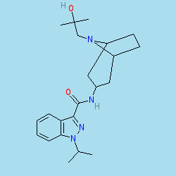 | SMILES | CC(C)n1nc(C(=O)NC2CC3CCC(C2)N3CC(C)(C)O)c2ccccc21 |
