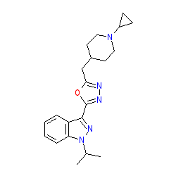 | SMILES | CC(C)n1nc(-c2nnc(CC3CCN(C4CC4)CC3)o2)c2ccccc21 |