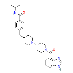 | SMILES | CC(C)NC(=O)c1ccc(CC2CCN(C3CCN(C(=O)c4cccc5[nH]cnc45)CC3)CC2)cc1 |