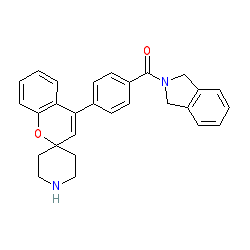 | SMILES | O=C(c1ccc(C2=CC3(CCNCC3)Oc3ccccc32)cc1)N1Cc2ccccc2C1 |
