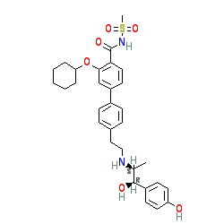 | SMILES | C[C@H](NCCc1ccc(-c2ccc(C(=O)NS(C)(=O)=O)c(OC3CCCCC3)c2)cc1)[C@H](O)c1ccc(O)cc1 |