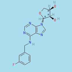 | SMILES | O[C@@H]1CO[C@@H](n2cnc3c(NCc4cccc(F)c4)ncnc32)[C@@H]1O |