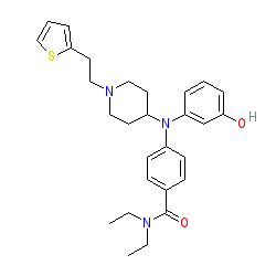 | SMILES | CCN(CC)C(=O)c1ccc(N(c2cccc(O)c2)C2CCN(CCc3cccs3)CC2)cc1 |