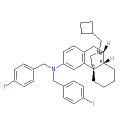 | SMILES | Ic1ccc(CN(Cc2ccc(I)cc2)c2ccc3c(c2)[C@@]24CCCC[C@H]2[C@@H](C3)N(CC2CCC2)CC4)cc1 |