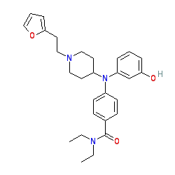 | SMILES | CCN(CC)C(=O)c1ccc(N(c2cccc(O)c2)C2CCN(CCc3ccco3)CC2)cc1 |