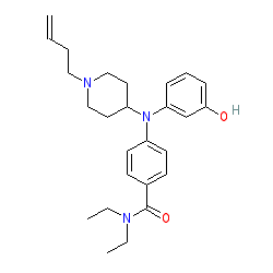 | SMILES | C=CCCN1CCC(N(c2ccc(C(=O)N(CC)CC)cc2)c2cccc(O)c2)CC1 |