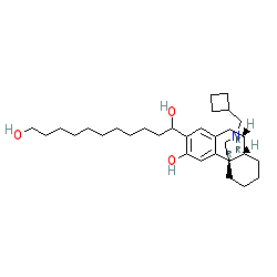 | SMILES | OCCCCCCCCCCC(O)c1cc2c(cc1O)[C@@]13CCCC[C@H]1[C@@H](C2)N(CC1CCC1)CC3 |