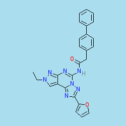 | SMILES | CCn1cc2c(nc(NC(=O)Cc3ccc(-c4ccccc4)cc3)n3nc(-c4ccco4)nc23)n1 |