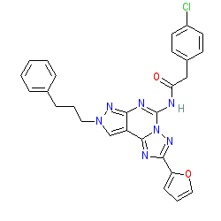 | SMILES | O=C(Cc1ccc(Cl)cc1)Nc1nc2nn(CCCc3ccccc3)cc2c2nc(-c3ccco3)nn12 |