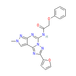 | SMILES | Cn1cc2c(nc(NC(=O)COc3ccccc3)n3nc(-c4ccco4)nc23)n1 |