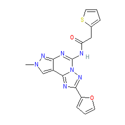 | SMILES | Cn1cc2c(nc(NC(=O)Cc3cccs3)n3nc(-c4ccco4)nc23)n1 |