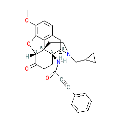 | SMILES | COc1ccc2c3c1O[C@H]1C(=O)CC[C@@]4(NC(=O)C#Cc5ccccc5)[C@@H](C2)N(CC2CC2)CC[C@]314 |