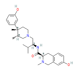 | SMILES | CC(C)[C@@H](CN1CC[C@@](C)(c2cccc(O)c2)[C@@H](C)C1)NC(=O)[C@H]1Cc2ccc(O)cc2CN1C |