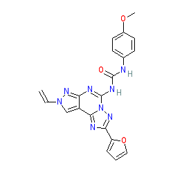 | SMILES | C=Cn1cc2c(nc(NC(=O)Nc3ccc(OC)cc3)n3nc(-c4ccco4)nc23)n1 |